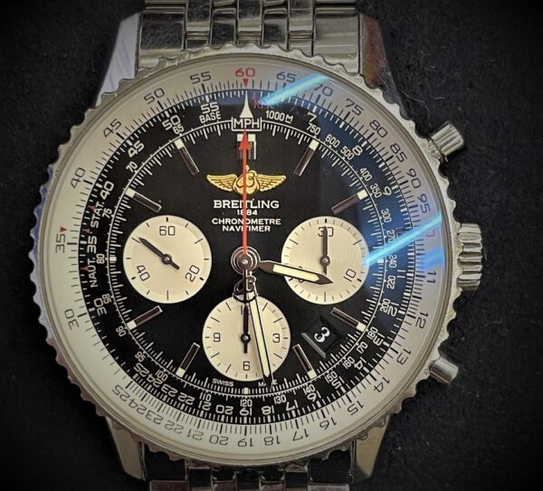本日ご紹介するのは、航空時計の金字塔として知られるブライトリングの『ナビタイマー』でございます。計算尺を備えたその緻密な文字盤は、単なる時刻を知る道具を超え、空に挑むパイロットたちの情熱と信頼を象徴する意匠として、世界中の時計愛好家を魅了し続けてきました。